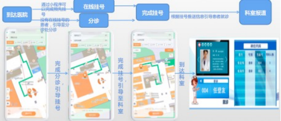 根據患者就診流程,解決患者候診及就診的過程,減少患者就診時間,同時針對患者一系列就診環節根據節點內容自發為患者開啟路線規劃,提升就醫的效率;